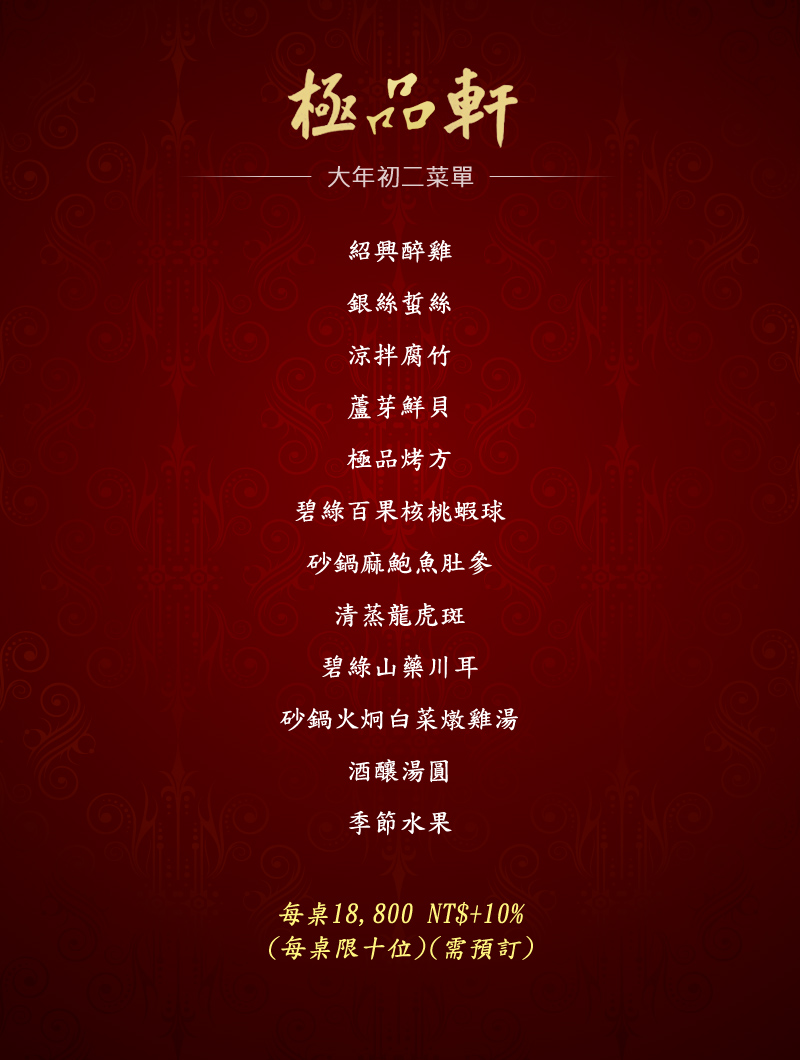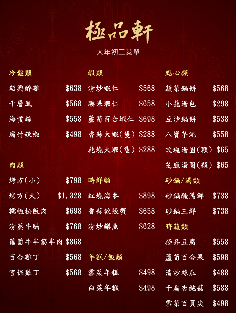 2026年大年初二菜單